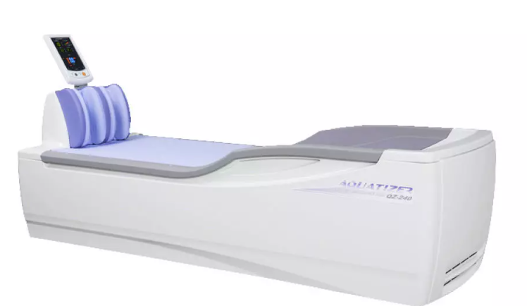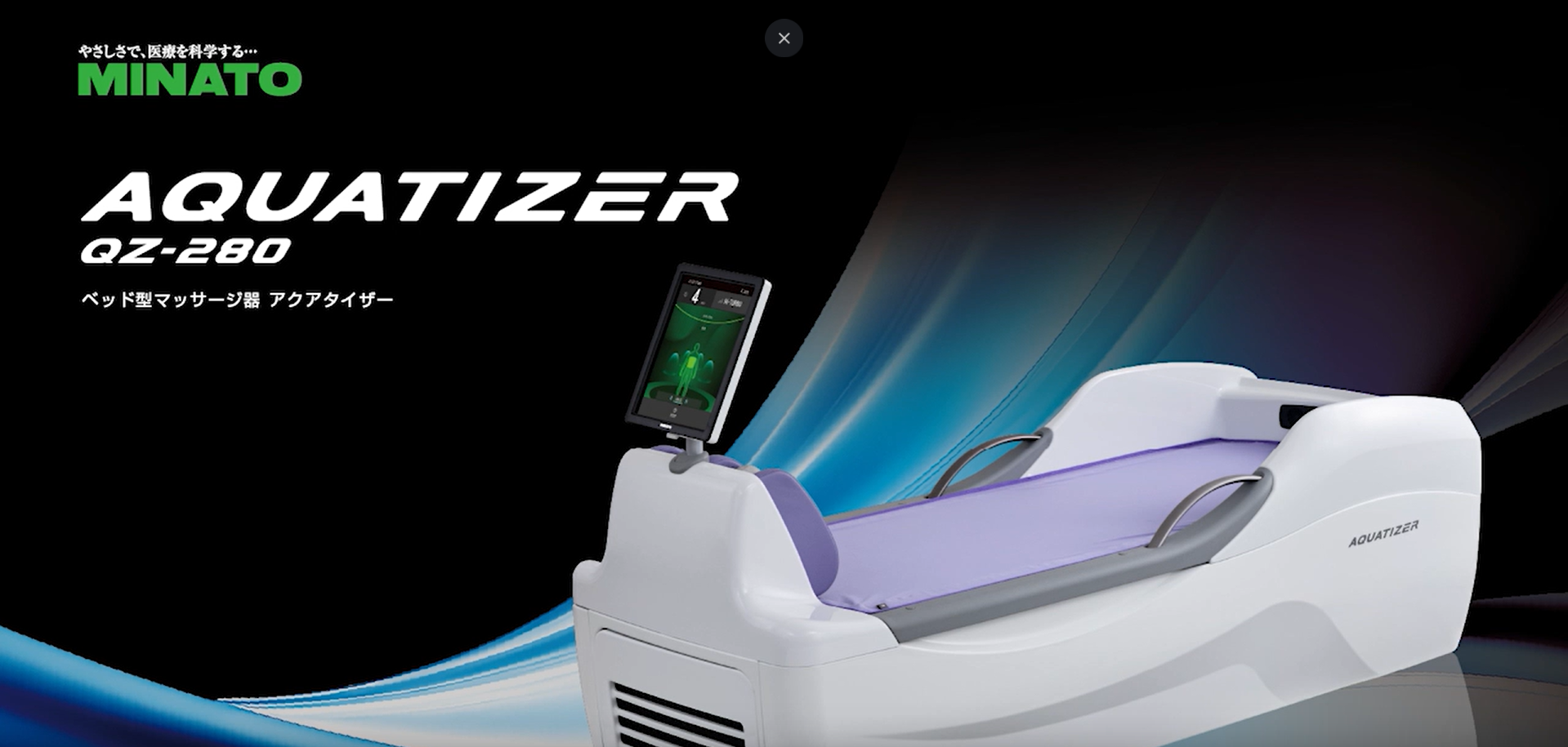 「アクアタイザー」とは、水圧刺激を利用して全身の筋肉を優しく、かつ力強く揉みほぐす、最先端のウォーターベッド型治療器です。